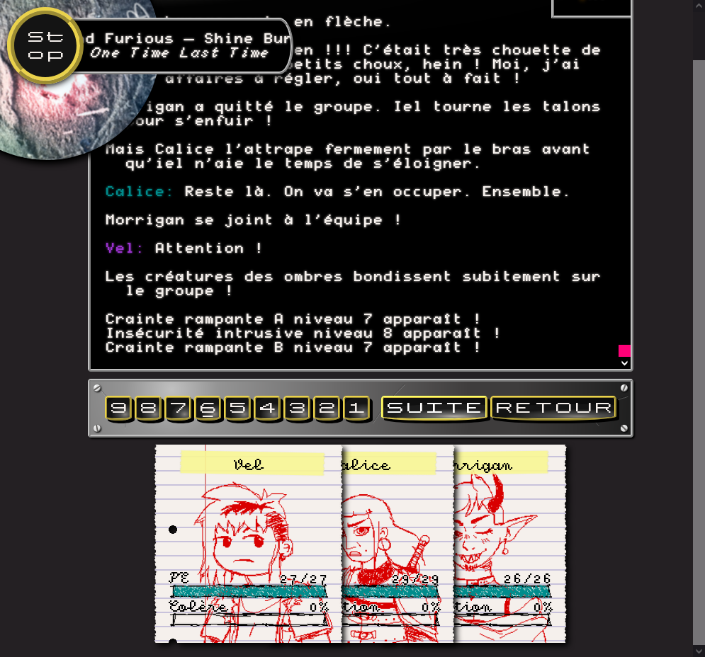 moteur de jeu trop cool, belle écriture, et système de combat. Trop trop beau travail !