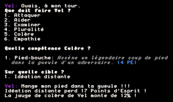 Smol Console, moteur de jeu textuel en javascript, réalisé par Velvet